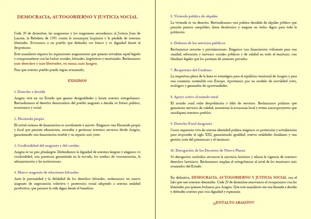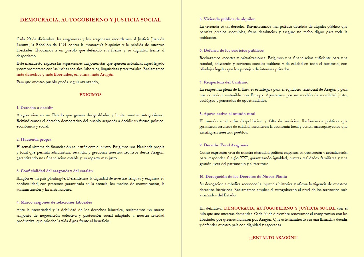 Este es el Manifiesto que firmamos con otras diez organizaciones, entidades y colectivos en el aniversario de la ejecución de Juan de Lanuza, Justicia de Aragón.