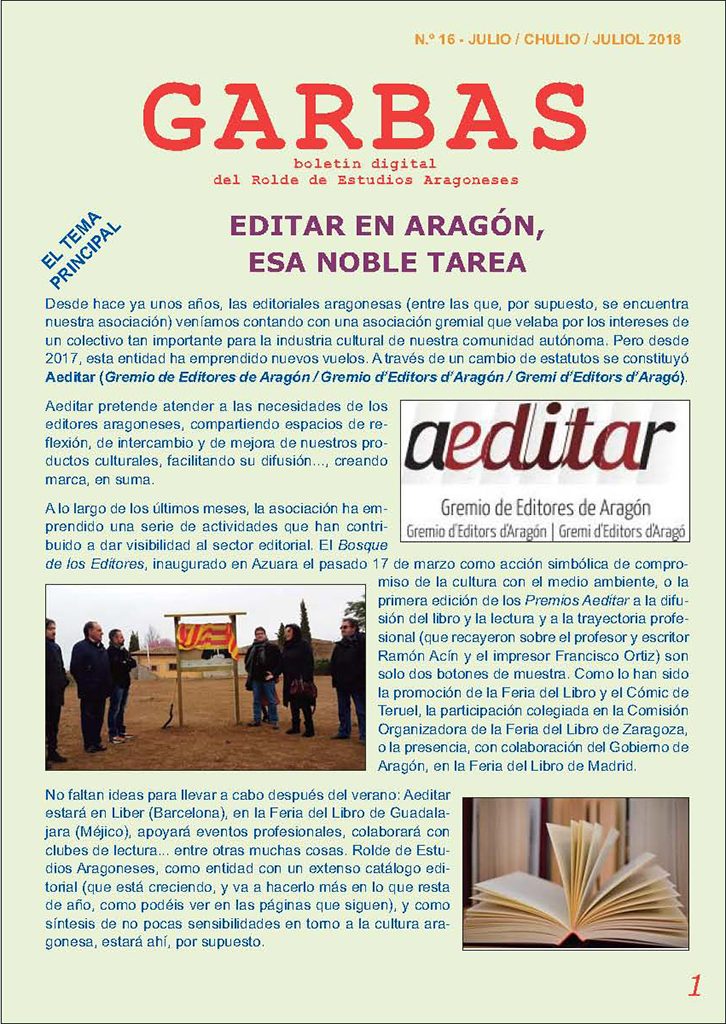 El número 16 de Garbas, Boletín digital de Rolde de Estudios Aragoneses ofrece el balance de las actividades llevadas a cabo por nuestra asociación durante la primera mitad de 2018. Una agenda intensa que permite, también, anticipar los proyectos que tenemos en marcha para el otoño.
